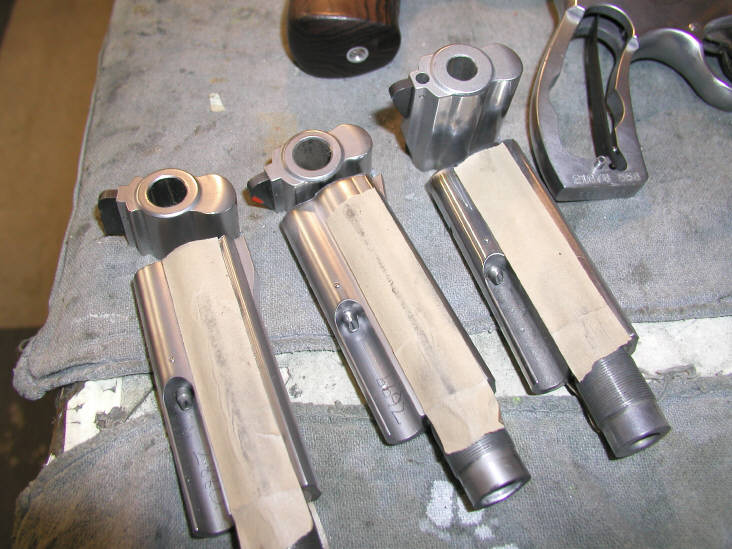 Almost done. Bases installed, barrels refinished. Notice that the barrel extensions have