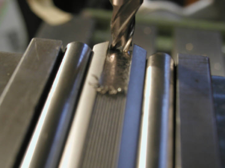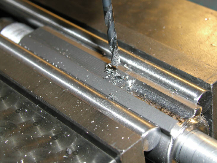 In the next three photos we will center drill , drill, and tap the hole for the base retaining