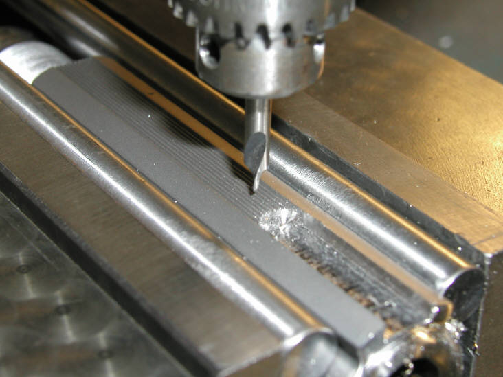 Next we will mill off what was left of the sight ramp and mill the slot for the new base.